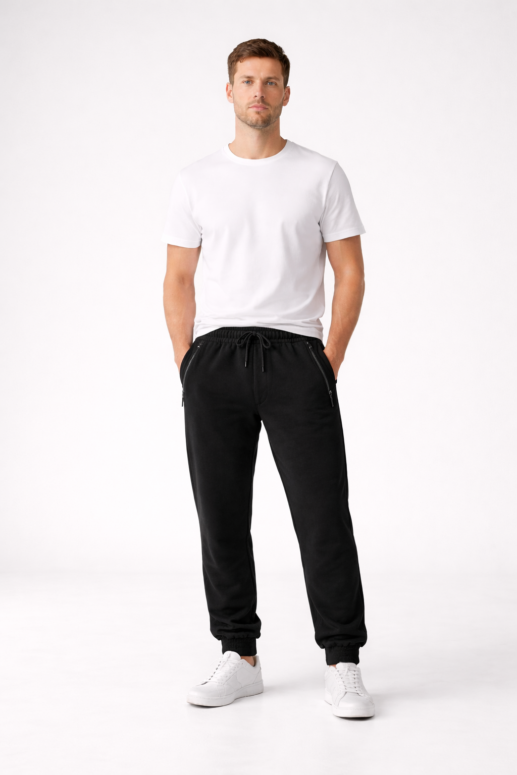 Спортивные брюки с зауженным кроем. Отлично подходят для тренировок и активного отдыха. Есть карманы на молнии.Купить Мужские брюки Sport Line напрямую от производителя. Ивановский трикотаж Bortnikowa — качество, проверенное временем.
